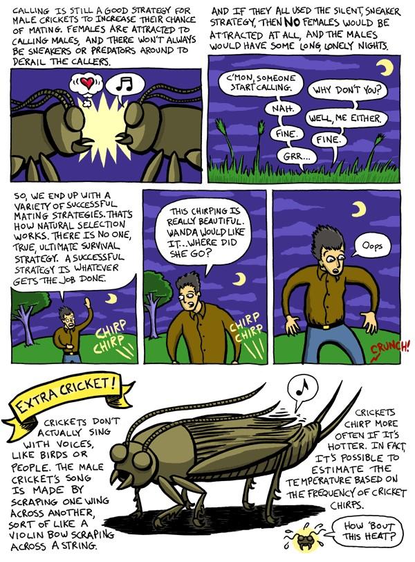 How does selection favor not calling. Calling increases the crickets chance of mating with a female as it attracts them because there wont always be sneakers or. For example as shown in the story this had attracted another cricket to intercepts the approaching female pretending it was the caller.